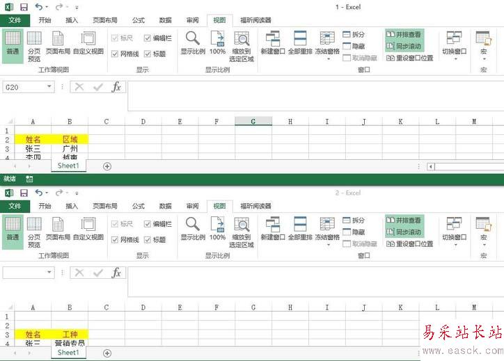 4、點擊并排查看之后,我們馬上就得到兩個上面排序的表格。