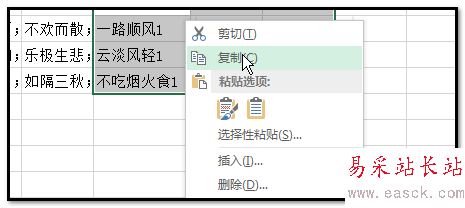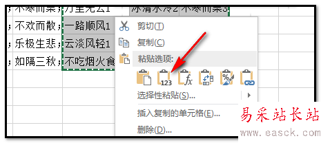 7、鼠標再次放在選區(qū)上,右擊,彈出的菜單中點粘貼選項中的值;如下圖箭頭所指的位置。
