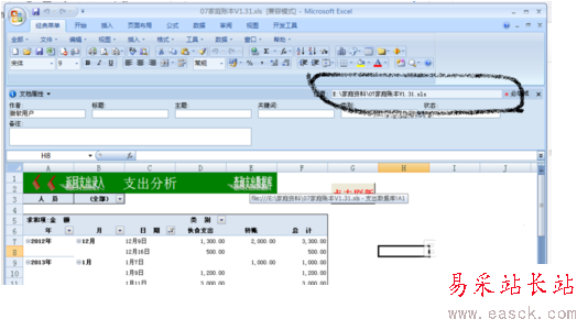 6、這時我們會發現我們的文件基本信息已經全部在表頭功能位置下方了.我們需要的信息就在圖片標注區域