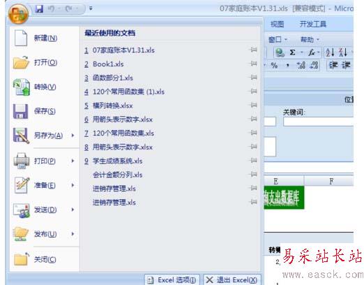 2、我們單擊文件左上角的OFFICE圖標,會彈出如圖效果