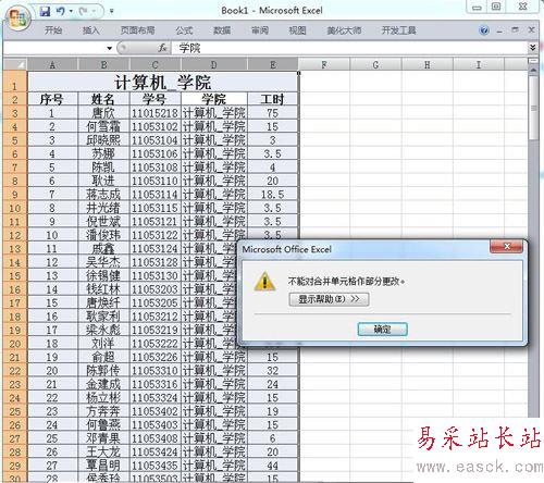 4、點擊"完成",則會看到出現一個小窗口提示"不能對合并單元格做部分更改",就不能完成分列任務。