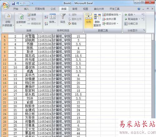2、首先我們進行文件分列,找到問題。分列過程;選中要分列的一列信息,在菜單欄中"數據"選擇"分列"。