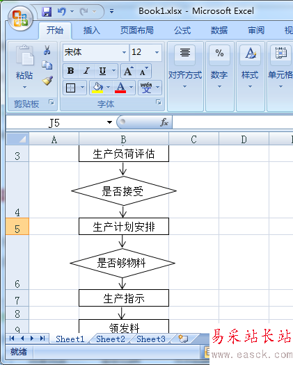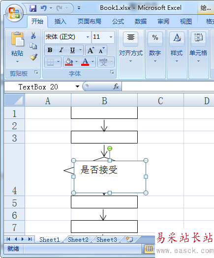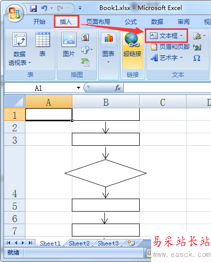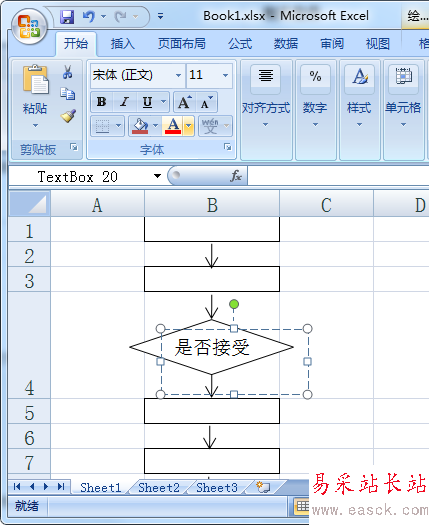6、插入了菱形的圖形之后,又增加箭頭作為標注,流程圖已經完成了一半了?,F在只需要插入一個文本框。