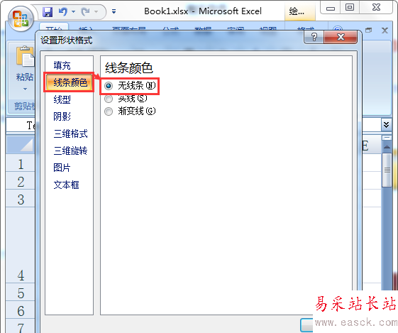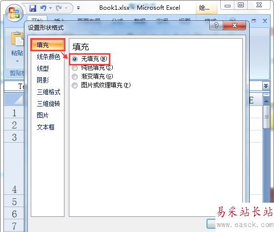 9、在設置形狀格式里面,填充選擇無顏色,線條顏色選擇無線條。