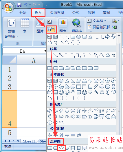 3、插入圖形——流程圖,根據自己需要的來進行選擇,本次操作選擇了菱形圖。