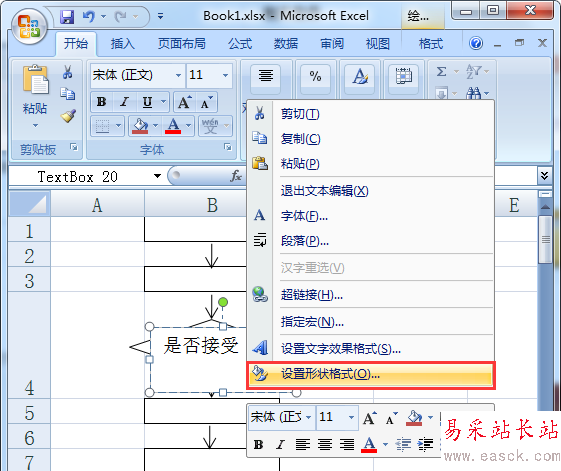8、在輸好文字的文本框,選中右擊鼠標,選擇最下面的一個設置形狀格式。