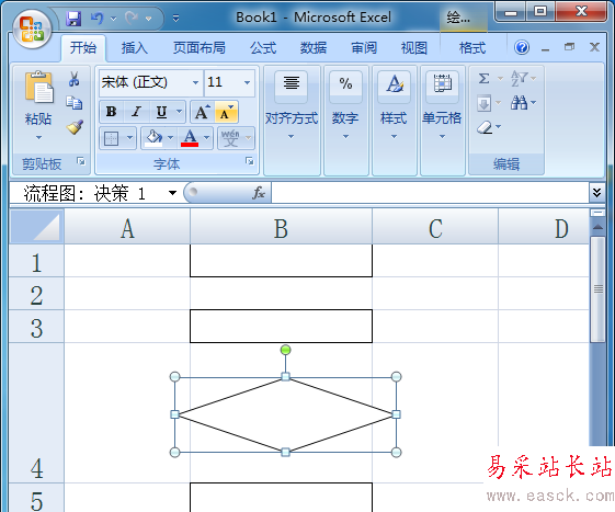 4、在表格的b4單元格里面,畫出一個菱形的圖形。然后再將b4單元格調整行高為60。