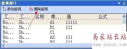 刪除的方法跟excel 2003一樣,直接單擊【刪除監視】按鈕