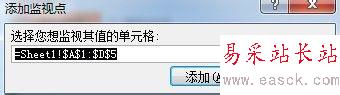 在【添加監視點】對話框選擇要添加監視的單元格,單擊【添加】按鈕