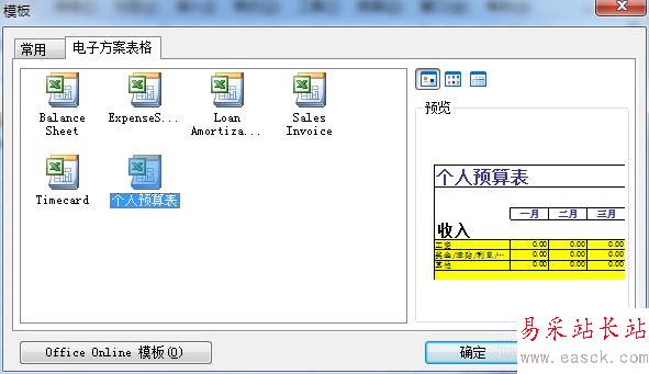我們要添加的表格模板。比如”個人預算表“。
