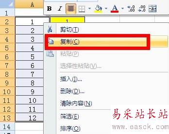 6、選中A2:A13,右擊鼠標(biāo)選擇復(fù)制,單擊任意空白單元格,右擊鼠標(biāo)選擇“選擇性粘貼”,在彈出的窗口中,勾選轉(zhuǎn)置。刪除B列,這樣兩列數(shù)據(jù)就變成一行數(shù)據(jù)了。
