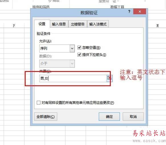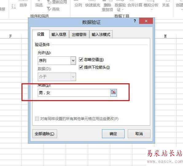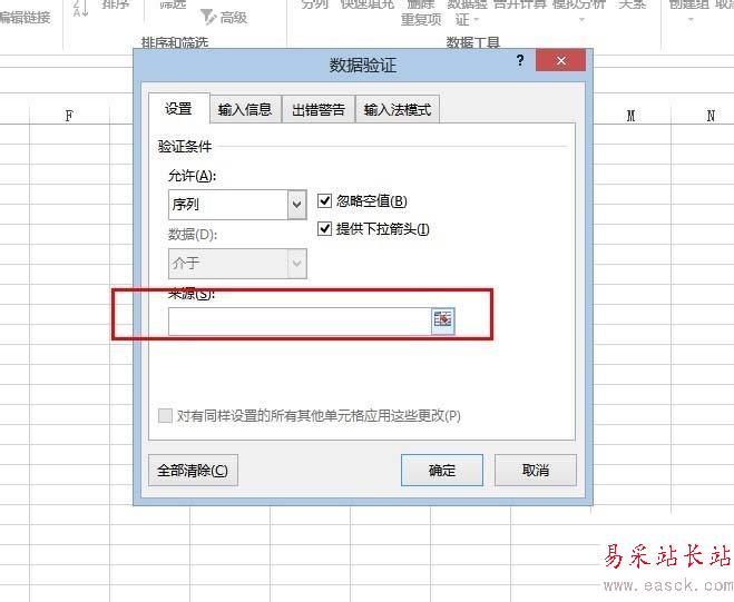4、在接下來的步驟中,點擊“設置”,并選擇“序列”,同時在“來源”中寫上待選擇的內容。