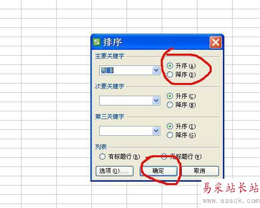6、然后在下個對話框中選擇升序還是降序排列,點擊確定。