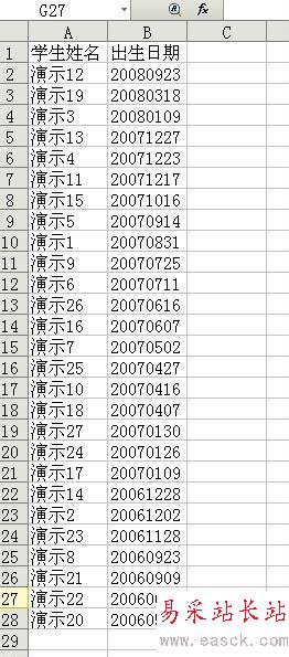 7、最后就能把要排列的內容按升序或降序的順序排列好了。