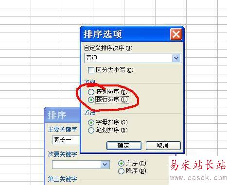 如果想排列整行的內容,也可以使用如上的方法,不過需要在第6步排序對話框的左下角找到“選項”,點擊“選項”,把排序的方向選為“按行排序”就能排列整行的內容了。詳細內容可以參照下圖所示。