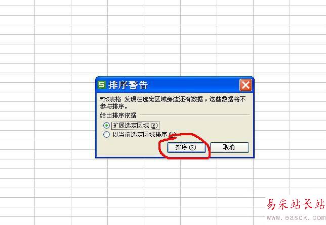 5、接著選擇“擴展選定區域”或“以當前選定區域排序”,一般情況下選擇“擴展選定區域”,這樣排序是其他與這個時間有關的內容也會跟著移動。