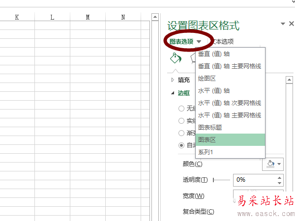 6、右擊圖表空白區域,選中“設置圖表區域格式”,在右側的菜單中找到“圖表選項”,點擊右側的小三角,我們便可以對網格線,坐標軸,標題等進行格式的設置。