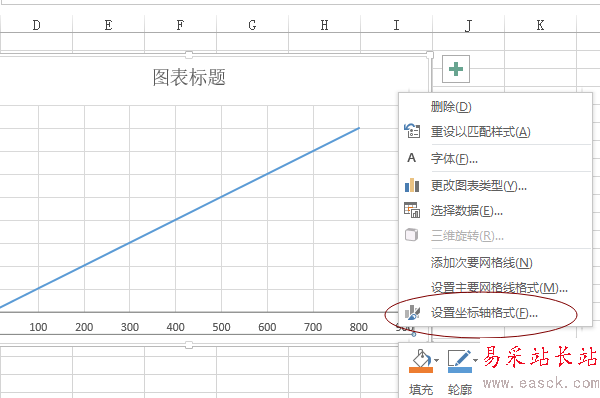 2、插入圖標后,選擇橫坐標的坐標值,然后點擊鼠標右鍵,點擊“設置坐標軸格式”