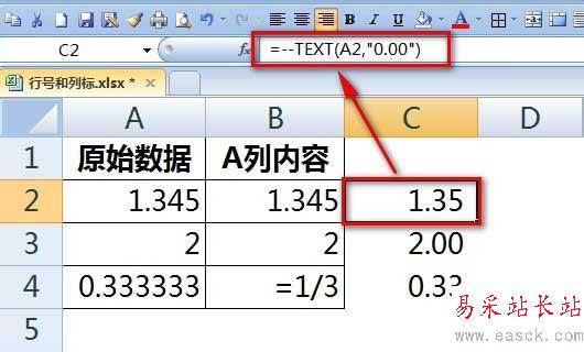 =--TEXT(A2,"0.00")。參與運算時已經是四舍五入后的數字。