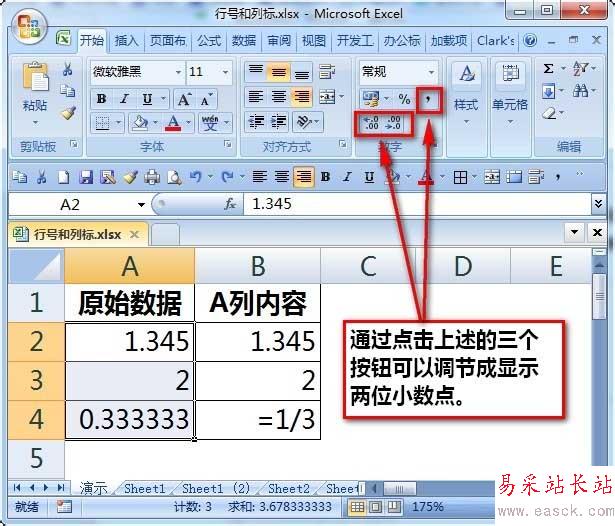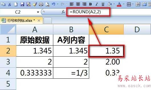 選中C2單元格,輸入函數:=ROUND(A2,2),下拉填充,調節小數點位數即可。