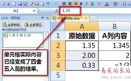 第五種方法:用剪切板或記事本方法變成真正四舍五入后的數字。