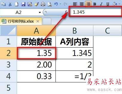 特點:excel單元格中顯示的是保留兩位小數,但是實際單元格的數值未改變。
