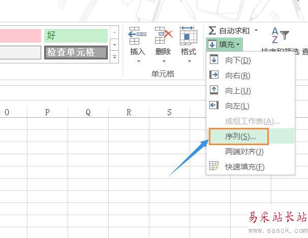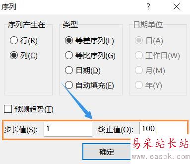 ②然后依次點擊工具欄的"填充"-"序列",如圖;在彈出的序列對話框,我們將步長值設(shè)置為1,將終止值設(shè)為100,然后便可快速填充完成全部的數(shù)字...