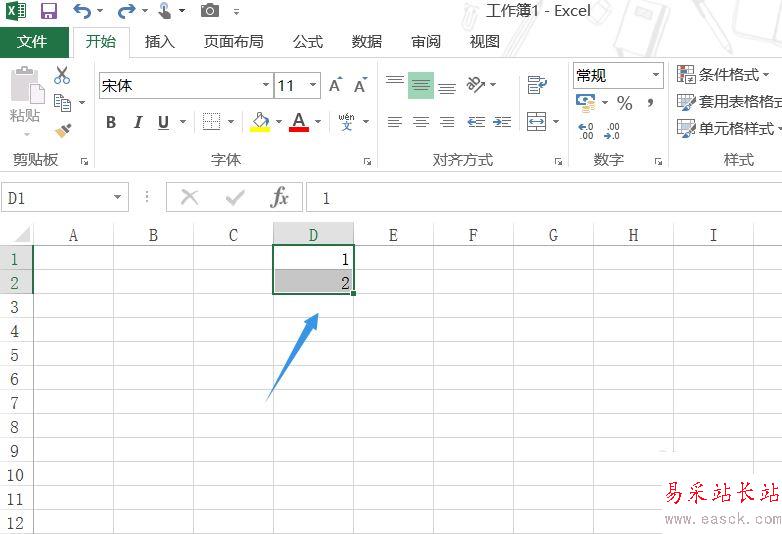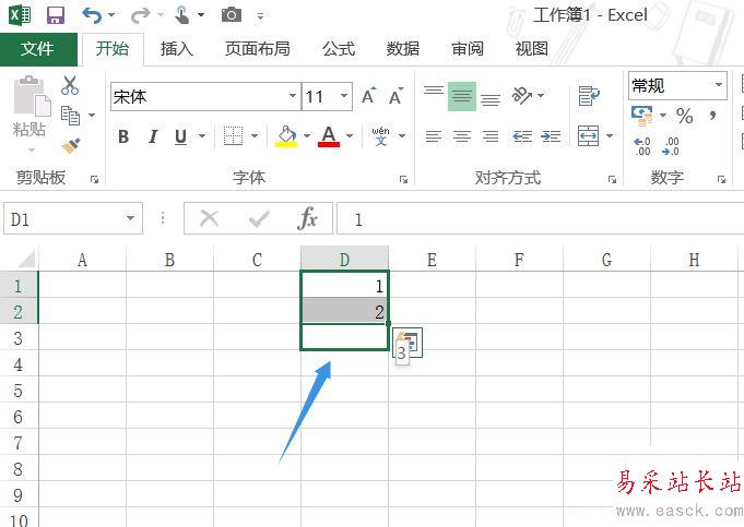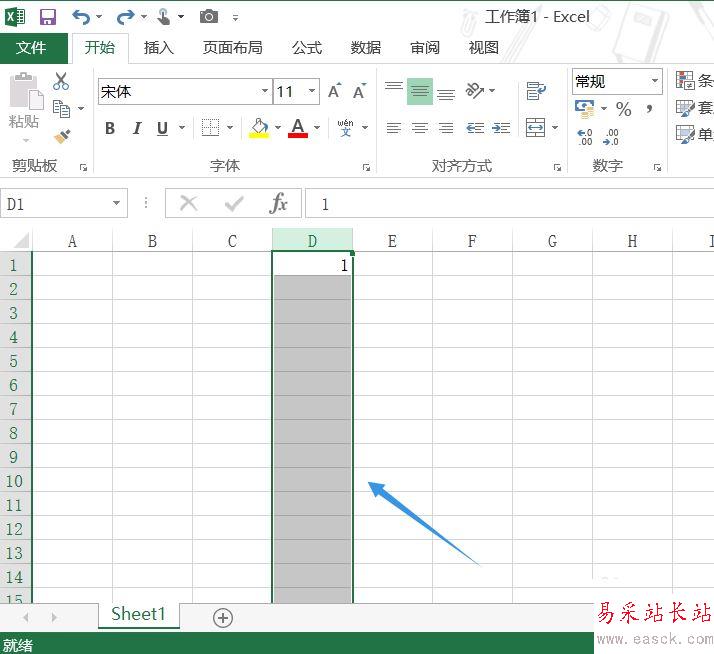 ①以上的方法有時候就不太好使,比如我們要添加太多的序列,比如到100,此時我們就要用到這種方法了,首先在D1列輸入數(shù)字1,然后選中要添加的列,比如D列;