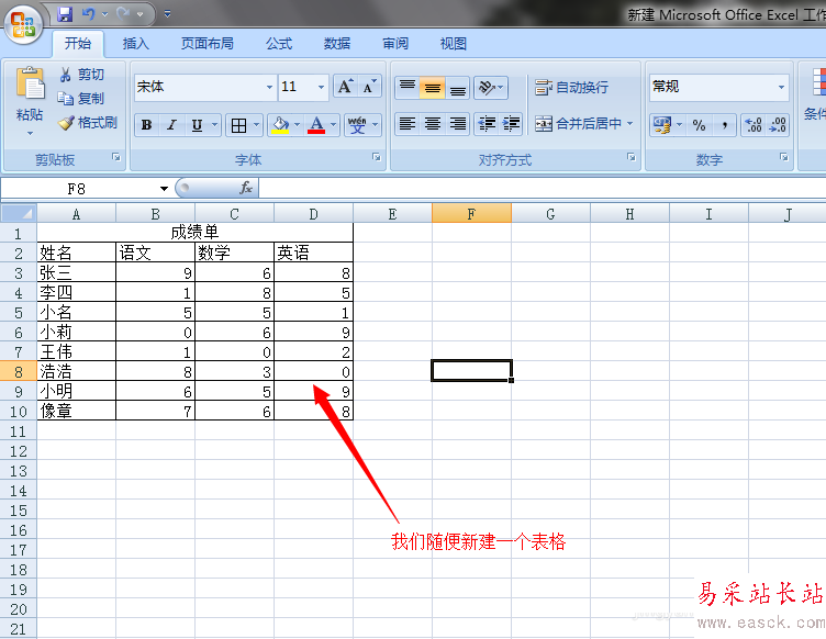 3、在Excel表格首頁上隨便新建一個表格,輸入一下數字,下圖中的數字我用的是隨機數,如下圖: