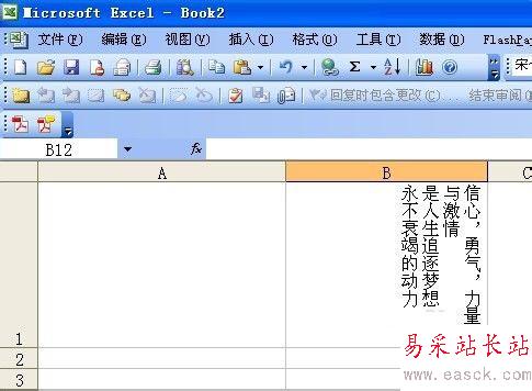 有的時候出于藝術美感等需求,要把excel表格里的某些單元格的文字內容進行左向豎排,像古典書籍一樣排版。例如下圖5所示,要把B1的右向橫排文字轉換成A1單元格的左向豎排。
