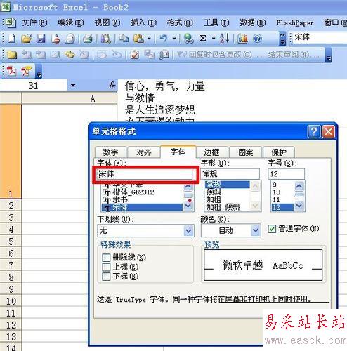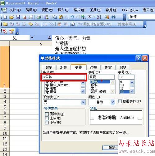 而我們需要在字體類型框里給宋體加一個@符號,如下圖9所示。完成后,就單擊確定,即可得到所需要的效果。
