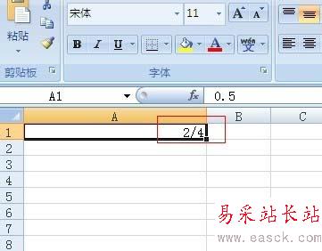 5、但是當我們輸入2/4時,系統會自動簡化為1/2,這時該怎么辦呢,