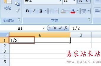 3、我們隨便輸入一個分數,比如1/2,回車之后,我們看到剛才輸入的分數變成了日期的格式