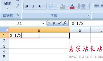 4、我們應該在輸入分數之前先輸入“0+空格”,然后再輸入1/2,這時回車就是分數形式了