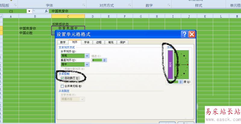 7、將文字方向設置為豎行,在將自動換行勾選,如圖