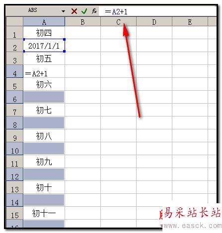 6、然后,在文檔上方編輯欄中輸入公式:=A2+1再按鍵盤的CTRL+回車鍵;
