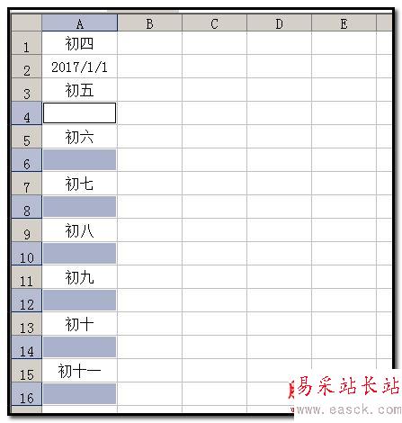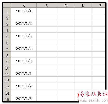 1、現在,要在A列中隔行插入2017/1/1到2017/8的連續日期;