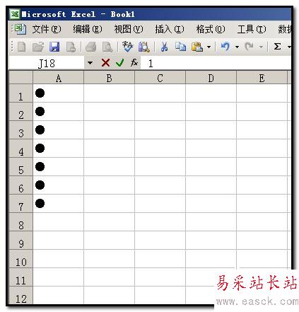 1、比如,在工作表的A1至A7單元格中插入項目符號。