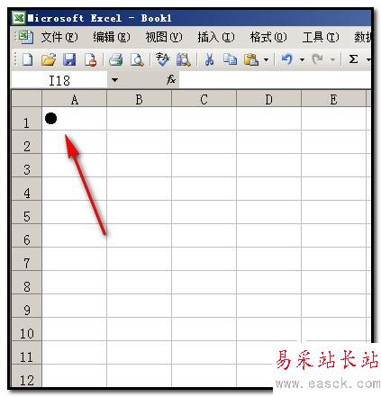 5、點確定后,“ ●” 即顯示在A1單元格中;如下圖所示。