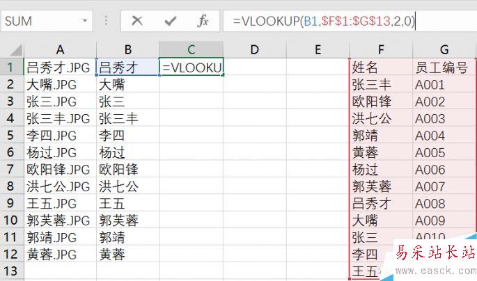 批量修改照片名不是很容易嗎,為什么還要Excel?因為這次小編要修改的照片有點麻煩,照片收集上來都是人名的方式命名,現在要根據員工編號修改,方便系統錄入。看起來一個一個對照著來才能行,其實不然,我們利用Excel就能實現按照編號快速修改人名的文件。