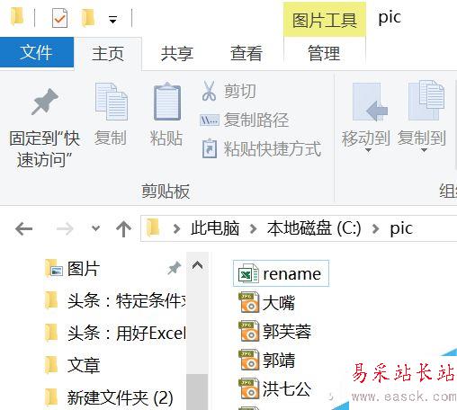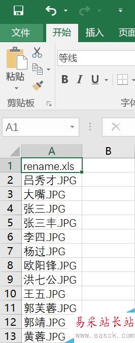 這時候C盤的pic目錄里就會看到一個rename.xls文件,點擊打開這個文件,刪除第一行的rename.xls(刪除行1)。