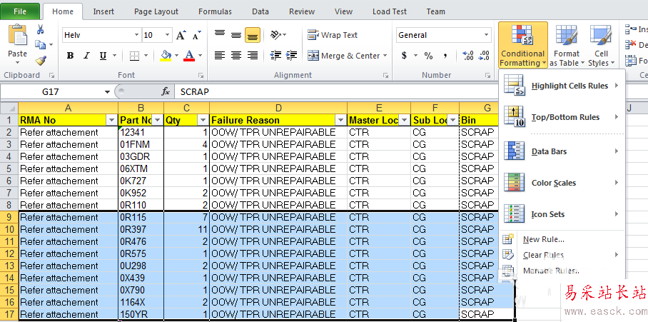 2.這里,我們先介紹Conditional formatting(條件格式化)。