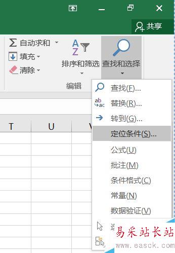 小編分享一招給大家,首先在開始選項卡點擊“查找和選擇”中的“定位條件”。注意,如果是按下快捷鍵Ctrl+G呼出,還會多出一個“定位”對話框,在左下單擊“定位條件”即可。