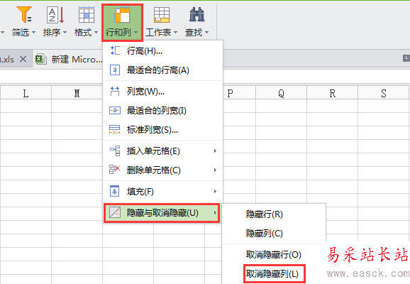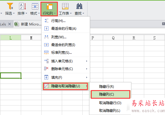 4、補(bǔ)充:另外的隱藏方法,點(diǎn)擊菜單欄處的行列,選擇隱藏或取消隱藏,然后按需選擇即可。