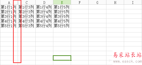 2、此時(shí),可以看到B列看不見了,行的隱藏,也是一樣,方法差不多;
