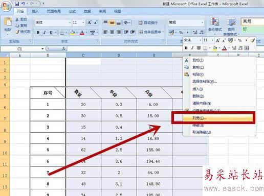【七】選擇相應(yīng)的列,并單擊右鍵,選擇“列寬”。