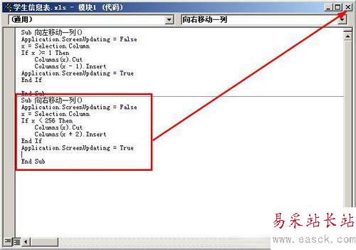 3、打開了宏編輯器,在這個模塊里,我們輸入如下代碼,然后點擊關閉。代碼如下: