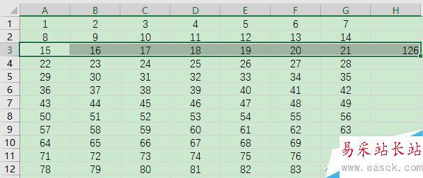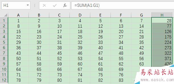 那么現在問題來了,如果需要求的是每一行的和,怎么辦呢?這里有個小技巧,就是選中所有數據時,要多選出一個空白的列,這樣在按Alt+=鍵之后,那個空白列中,就會顯示出每一行的求和啦。