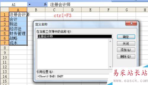 1、定義名稱直接使用ctrl+F3,這樣就不用去菜單中去尋找了。插入,名稱,定義。煩死了。