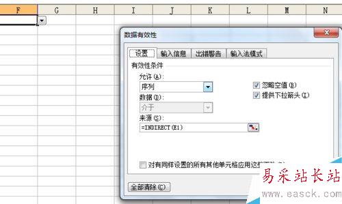 點擊進入有效性,在序列的條件下進行操作=indirect()括號中填寫的便是名稱所在的單元格